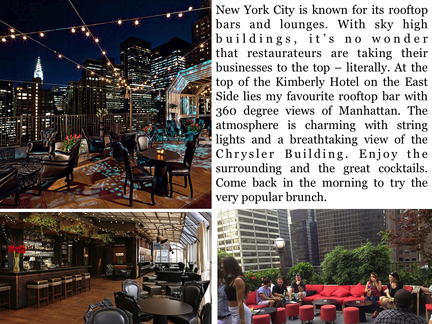 The view from the top is always the best. Chic rooftop bars with high-quality cocktails and food are the place to hang out this summer. Here are some of my favorites around the globe. Have you been to any rooftop bars you’d like to share?